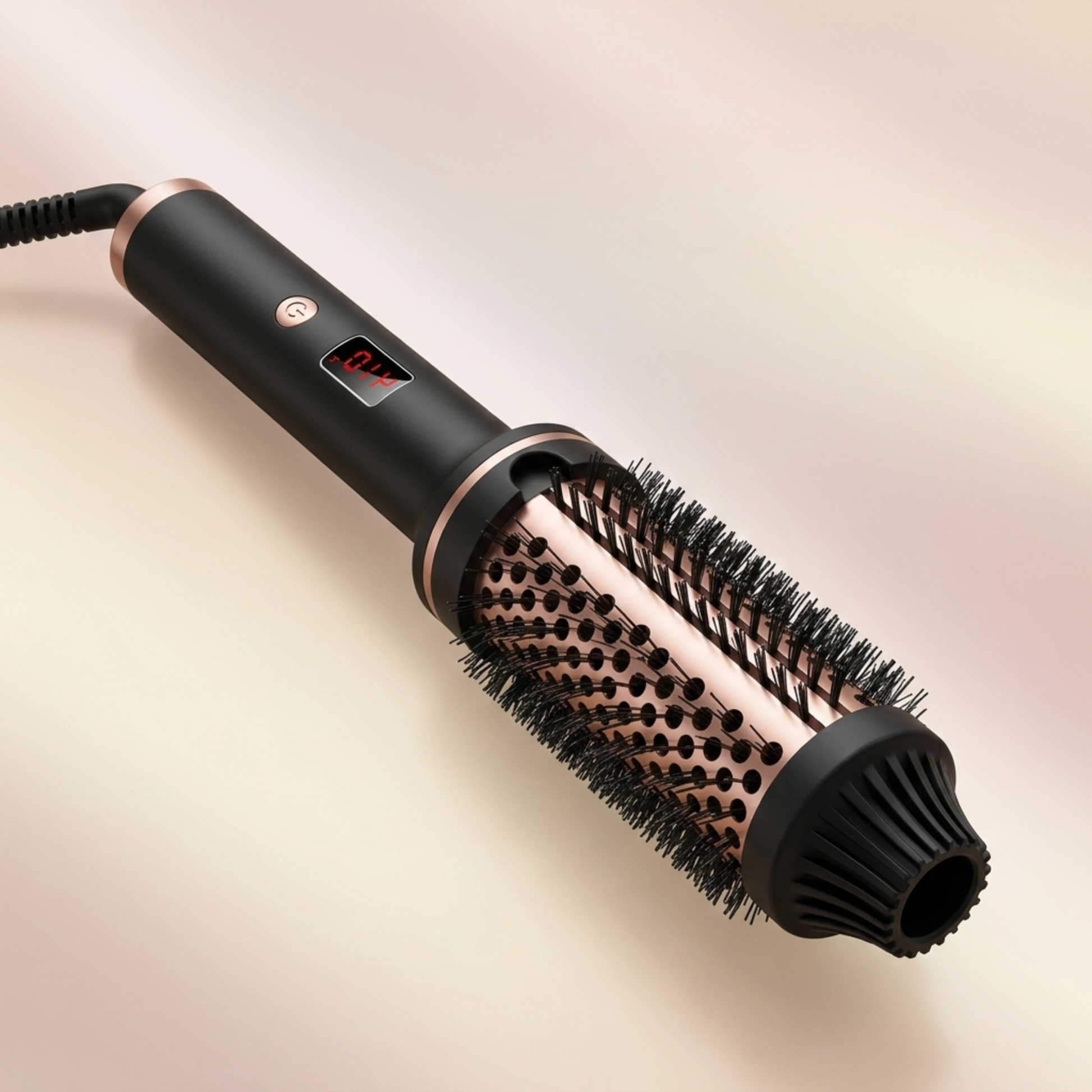 Cepillo térmico redondo profesional diseñado para dar volumen, suavizar y crear ondas sueltas con acabado brillante. Funciona como rizador y alisador multifuncional, ideal para cabello seco o húmedo. Cuenta con tecnología de ionización, control digital de temperatura, apagado automático y compatibilidad de voltaje internacional.